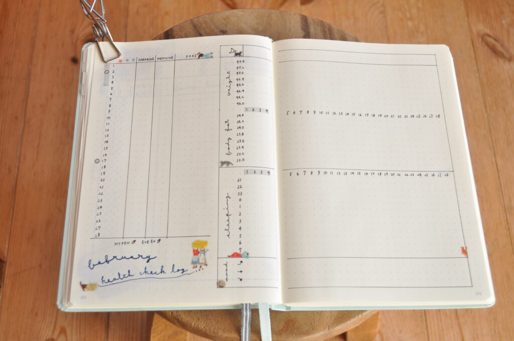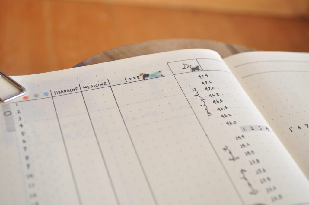 片頭痛と慢性頭痛を抱えているため、毎日記録できるように専用のスペースを設けています。