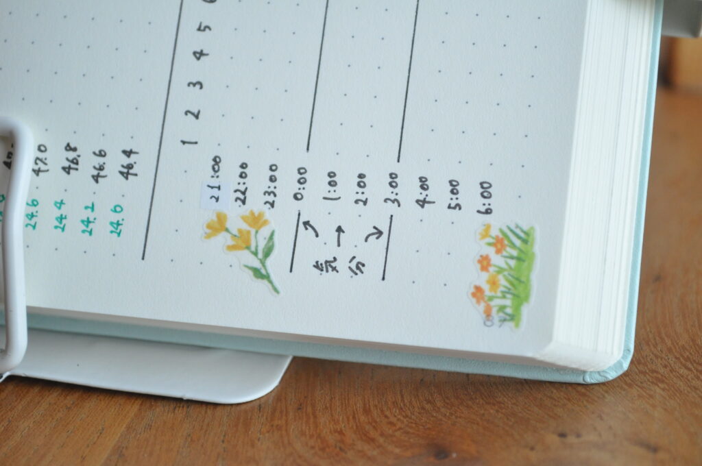 もっとも動きが少ないであろう、睡眠グラフの「0時〜3時」のスペースを使うことにしたのです。