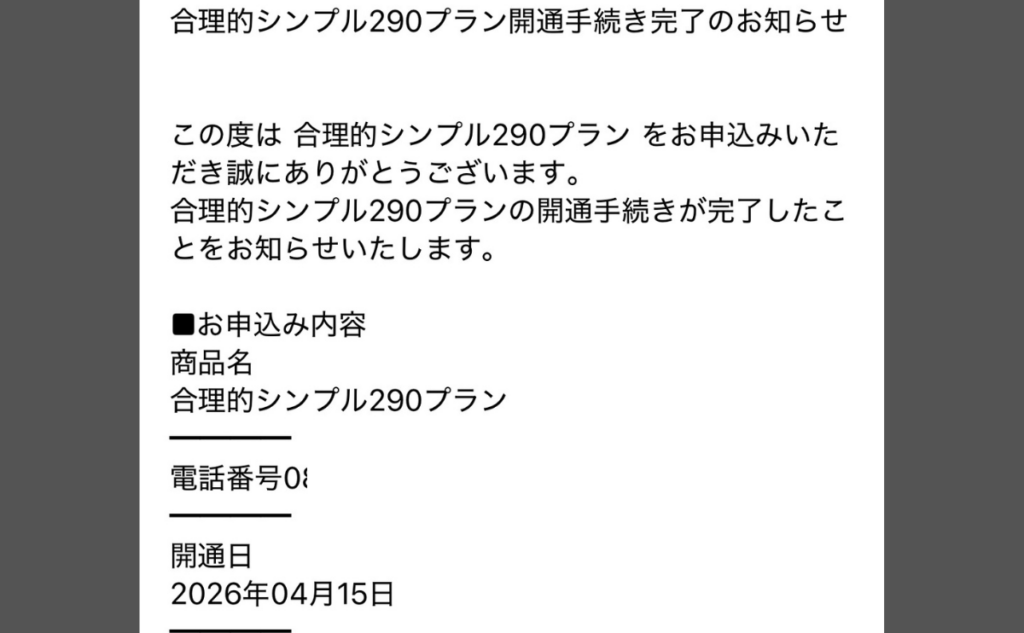 開通時に、このようなメールも届きます。