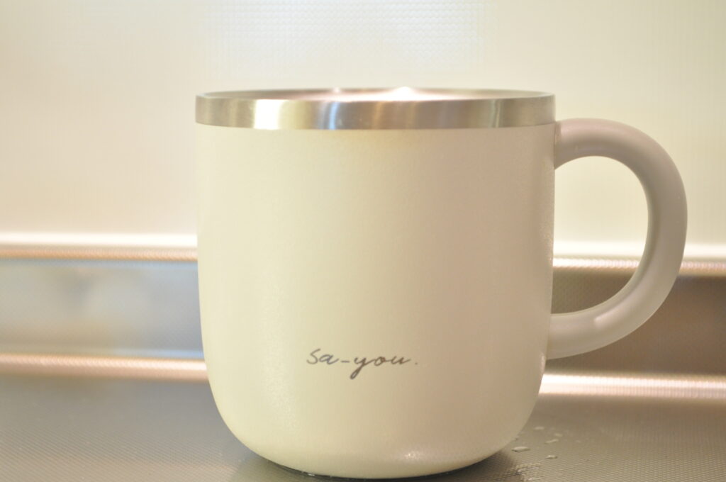 白湯だけでなく、熱々のコーヒーもなかなか飲めない私は、このマグにコーヒーを入れて飲んでいました。