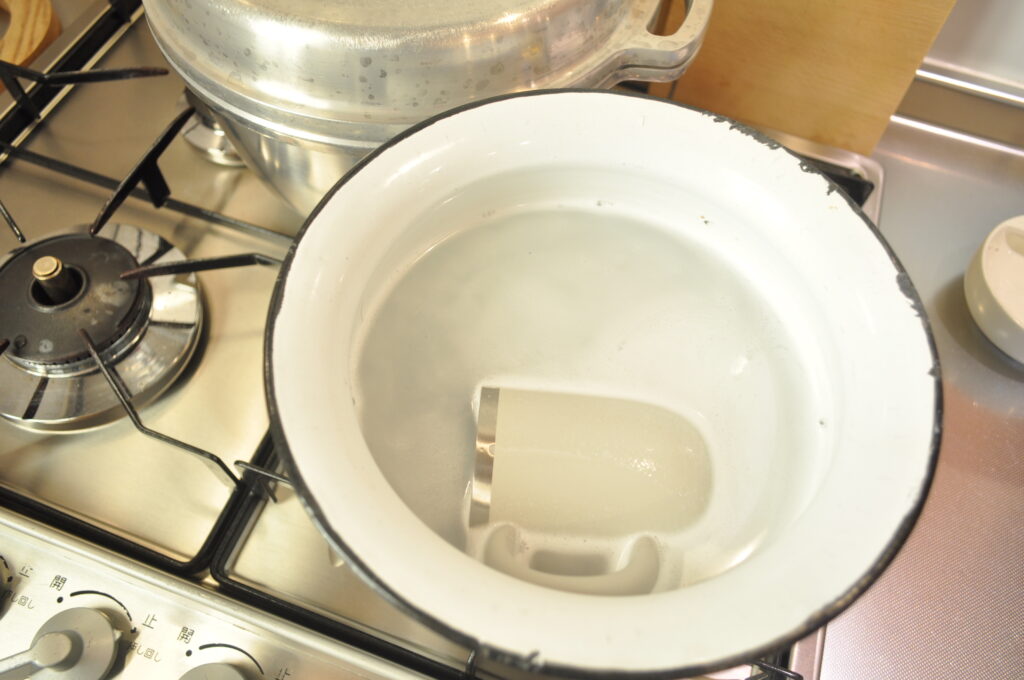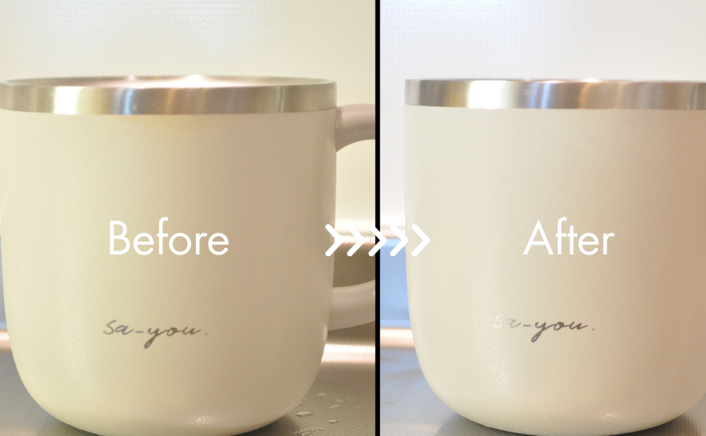 熱湯に溶かしたオキシクリーンの中に、マグを30分ほどつけ置きしました。