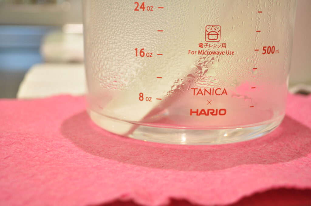 容器に少量の水を入れて、電子レンジで1分20秒。
